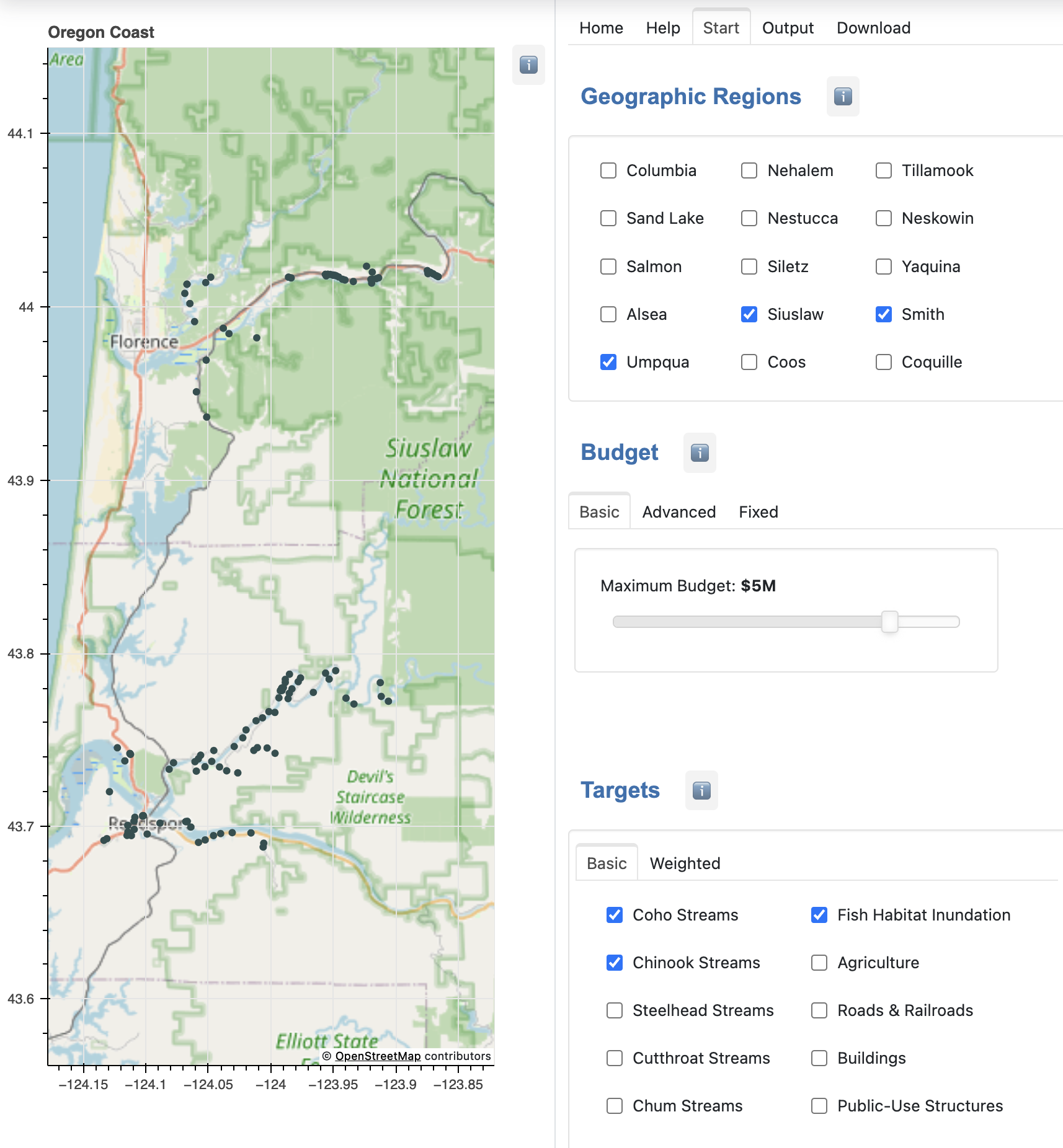 User Instructions has a more detailed discussion of how to use the web application, including additional ways of setting budget levels and how to specify weights for the optimization targets.